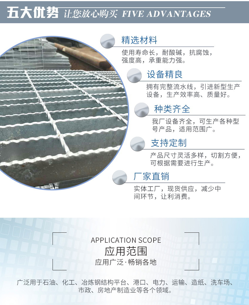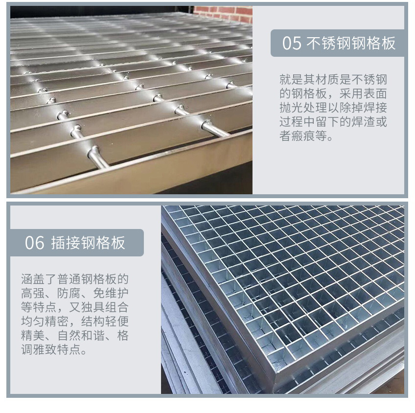 網格板重量輕,強度高,承載力大,省材經濟,通風透光,現代氣派,外形美觀,防滑安全,易于清掃,安裝簡便,經久耐用。