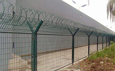 監(jiān)獄護欄網(wǎng)又稱作“Y型安全防御護網(wǎng)”監(jiān)獄鋼網(wǎng)墻,是由V型支架立柱,加強型焊接片網(wǎng),安全防盜連接件和熱鍍鋅刀片刺籠組成強度和安全防御性級別很高,近年來,被廣泛應用在監(jiān)獄,機場,軍事基地等高安全場所。